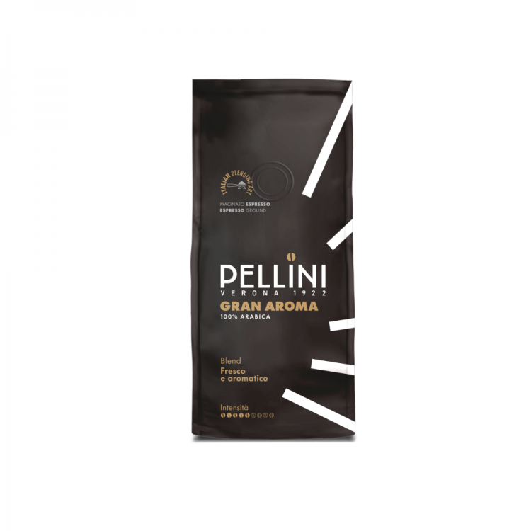 PELLINI GRAN AROMA е деликатна смес 100% Арабика с изискан ароматен профил, включващ флорални нотки и сладки нотки на амарето, които ѝ придават уникално и обгръщащо удоволствие.