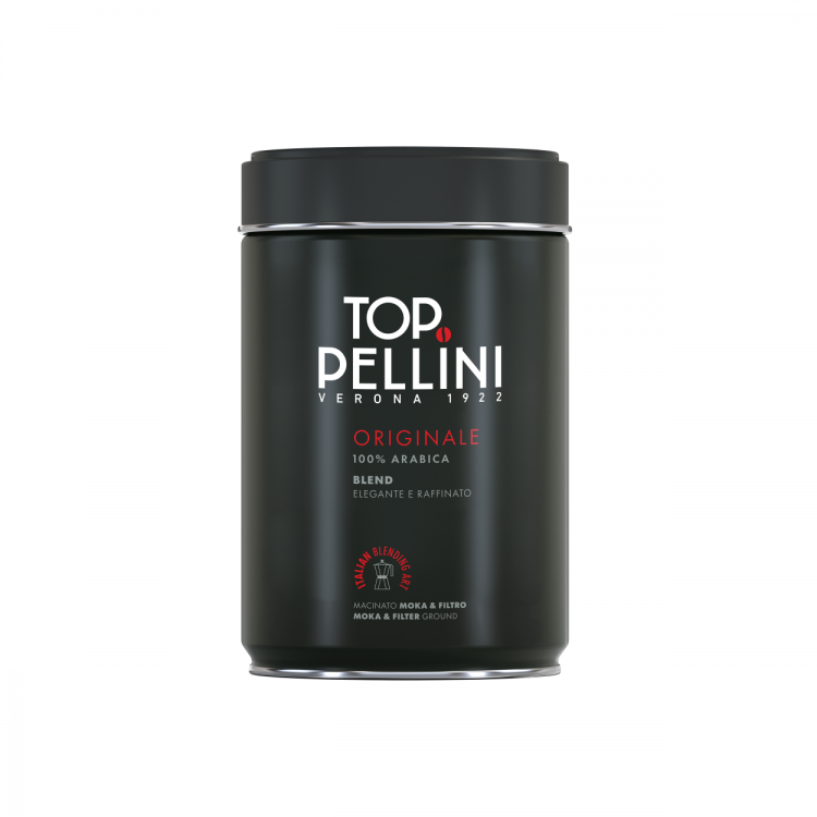 PELLINI TOP ORIGINALE е бленд от 100% Арабика с изискан профил, бавно печено и хармонични нотки на шоколад, бисквити и цитрусови плодове, за уникално сетивно изживяване.